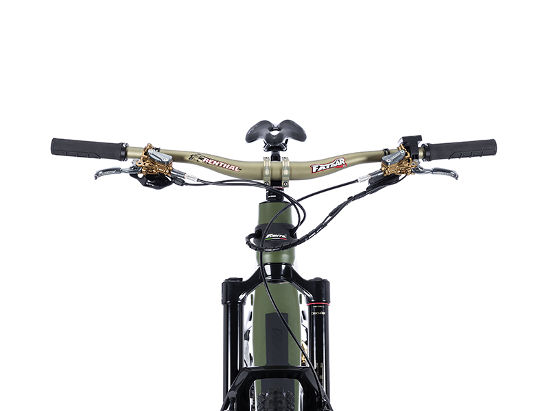 El cambio SRAM GX AXS de 12 velocidades permite transiciones rápidas y precisas, adaptándose perfectamente a diferentes condiciones de conducción. Los frenos Braking IN.CA.S con discos Braking S3 Battfly de 220 mm en la parte delantera y 203 mm en la trasera proporcionan una potencia de frenado superior, garantizando seguridad incluso en las bajadas más pronunciadas.
