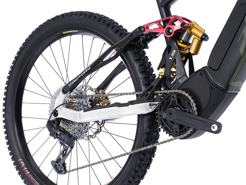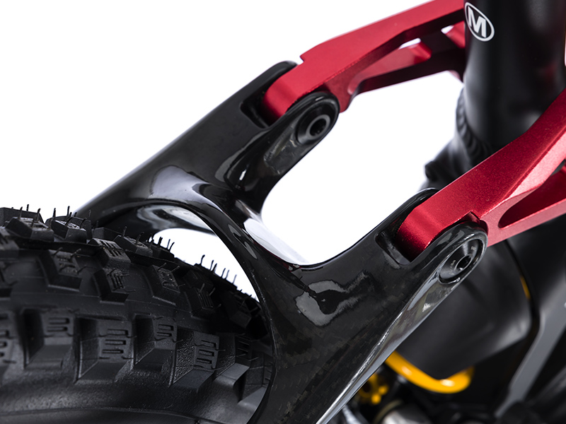 Las ruedas MAVIC E-DEEMAX con neumáticos Vittoria E-MAZZA 29"x2.6" delante y Vittoria E-MARTELLO 27.5"x2.8" detrás ofrecen tracción y resistencia en cualquier tipo de terreno.