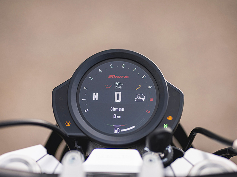 The Caballero 700 is equipped with a state-of-the-art electronics package. It is the world's first scrambler with an iconic round 3.5" TFT screen with integrated Bluetooth for controlling calls and media.