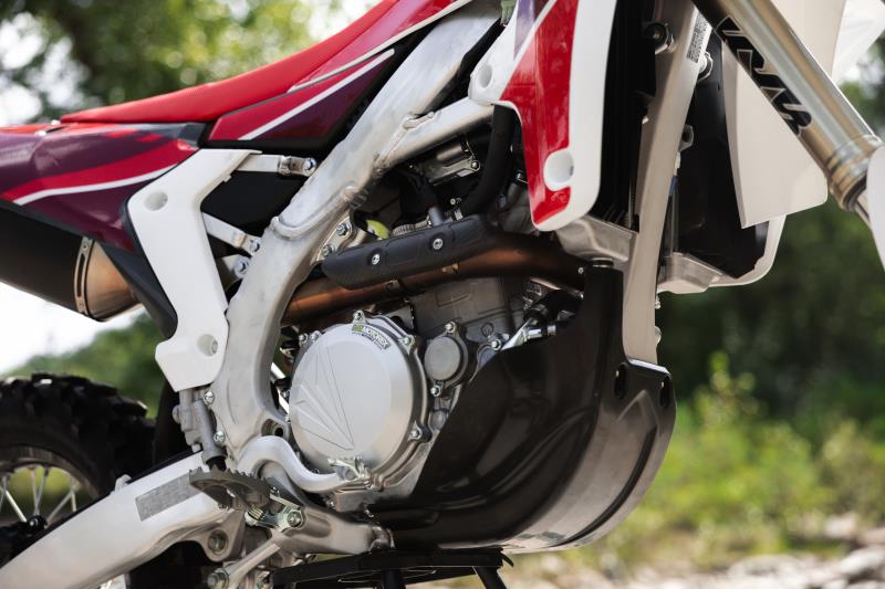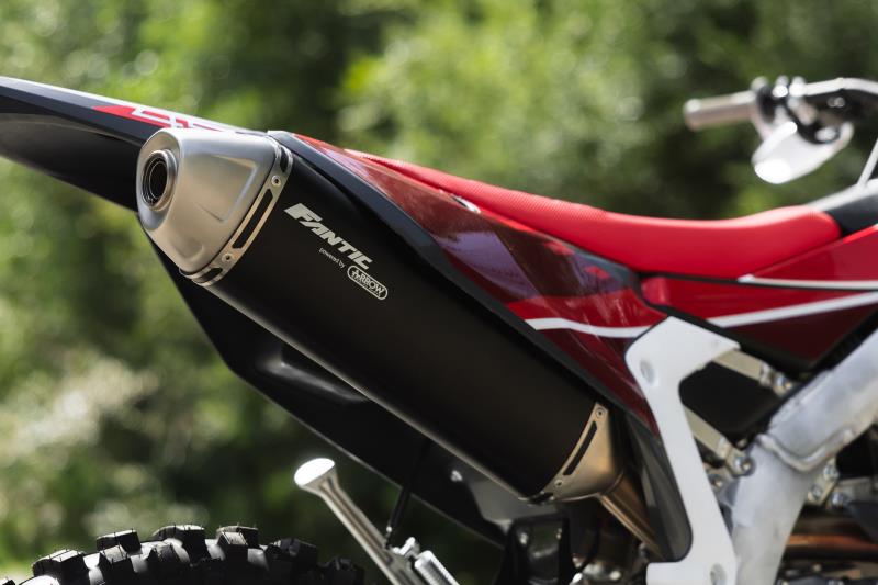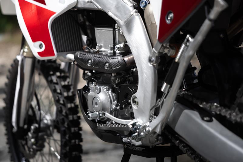 Developed in collaboration with Arrow, the manifold closely hugs the cylinder to centralise weight, while the aluminium terminal releases all the power and thrilling sound of a 450.