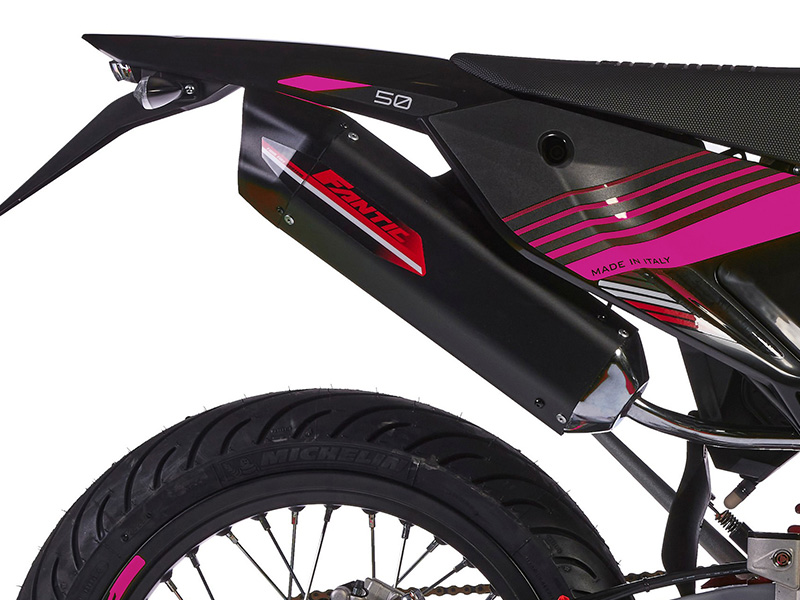 Châssis dérivé du 125cc, extrêmement compact, stable et facile à manier. Le Fantic 50 Motard est conçu pour faire de chaque voyage un moment d'adrénaline.