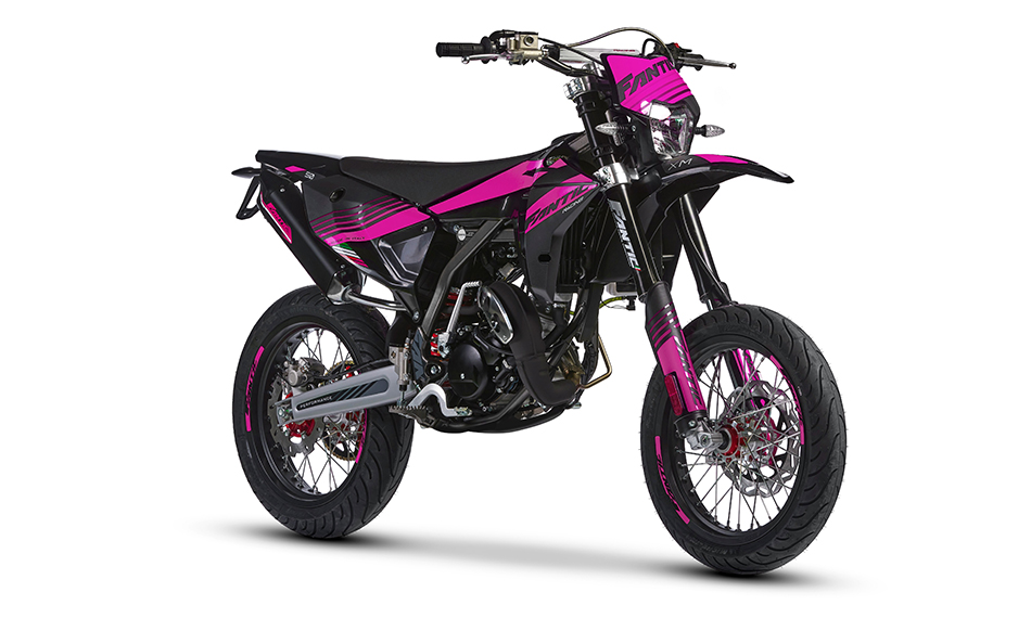 Le XM 50 Performance est équipé d'une fourche de 41 mm avec tiges torsadées et d'une suspension arrière Fantic, d'un bras oscillant à section variable et d'une tringlerie progressive. Les graphismes sont également nouveaux, proposés en deux combinaisons de couleurs "White Version" et "Black Version" avec des lignes qui rappellent le même Fantic Racing Factory Feeling.