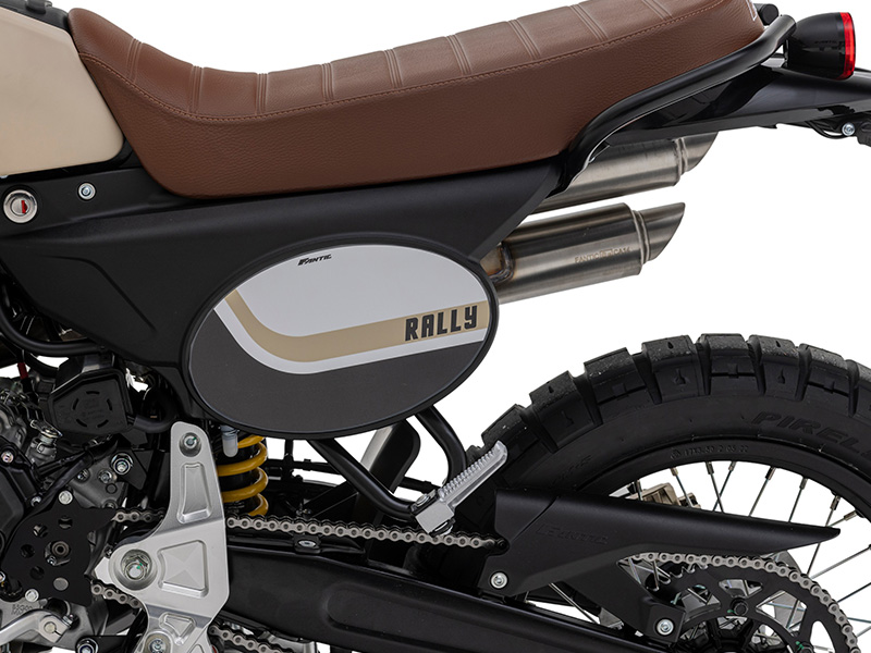 The Caballero 125 Rally represents the ultimate evolution of the range’s chassis, designed to tackle any terrain with superior performance. For the first time, it comes equipped with Pirelli Scorpion Rally STR tires and a 21” front wheel, an ideal solution to enhance stability and control in off-road conditions.