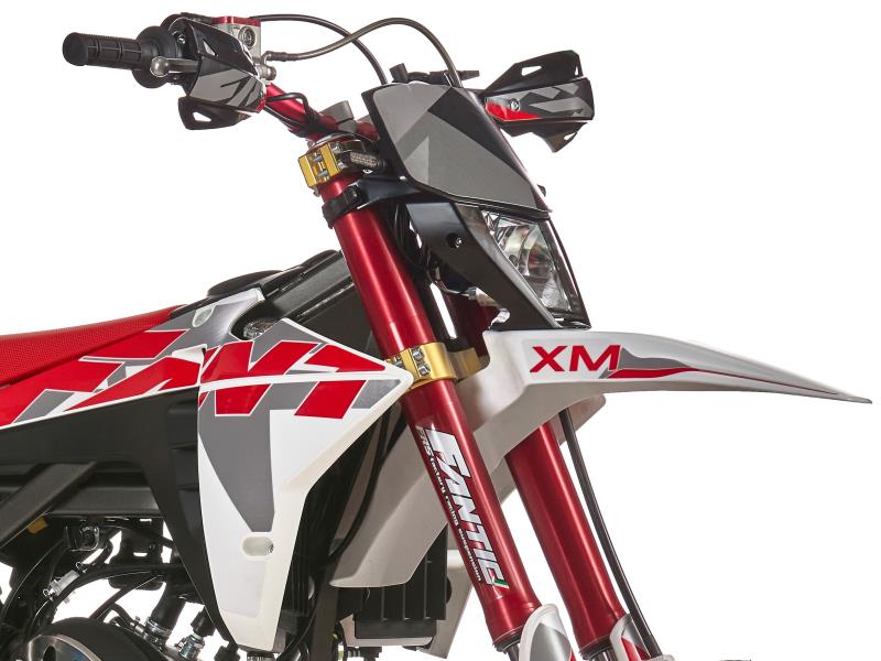 Ø28 mm handlebar, handguards, black silencer, red anodized components: the XM 50 Competition looks like a real race bike.