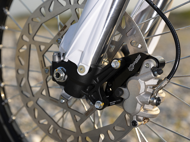 With an enlarged 300 mm front break you can be sure you’ll be able to stop at any speed. We have also developed the pad compound to offer you the best modularity and drive on all types of terrain.