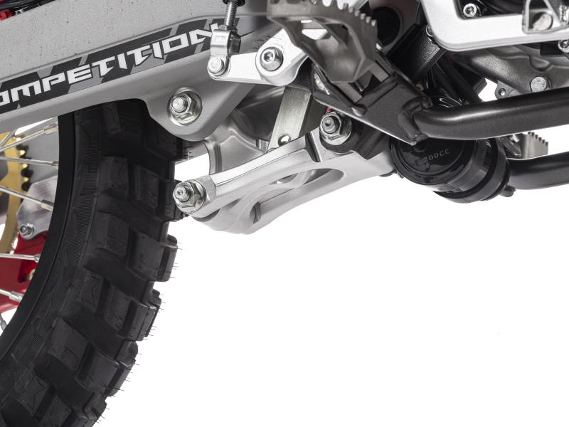 Les suspensions Fantic FRS — fourche USD Ø41 mm avec pieds forgés et amortisseur Piggyback entièrement réglable — sont conçues pour l’enduro exigeant.