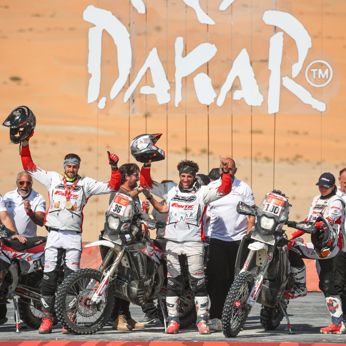Completing the Dakar is always a team victory, and Fantic, the only Italian manufacturer participating in the most prestigious rally raid, has every reason to be satisfied. Alongside the three Fantic Factory Rally riders—Jeremy Miroir, Tommaso Montanari, and Sandra Gomez—the supported riders also stepped onto the podium. It was an unforgettable moment after nearly 8,000 kilometres of adventure and team spirit, with Tomas de Gavardo, Maxime Pouponnot, and Rafic Eid emotional and proud as they received their “finisher” medals.