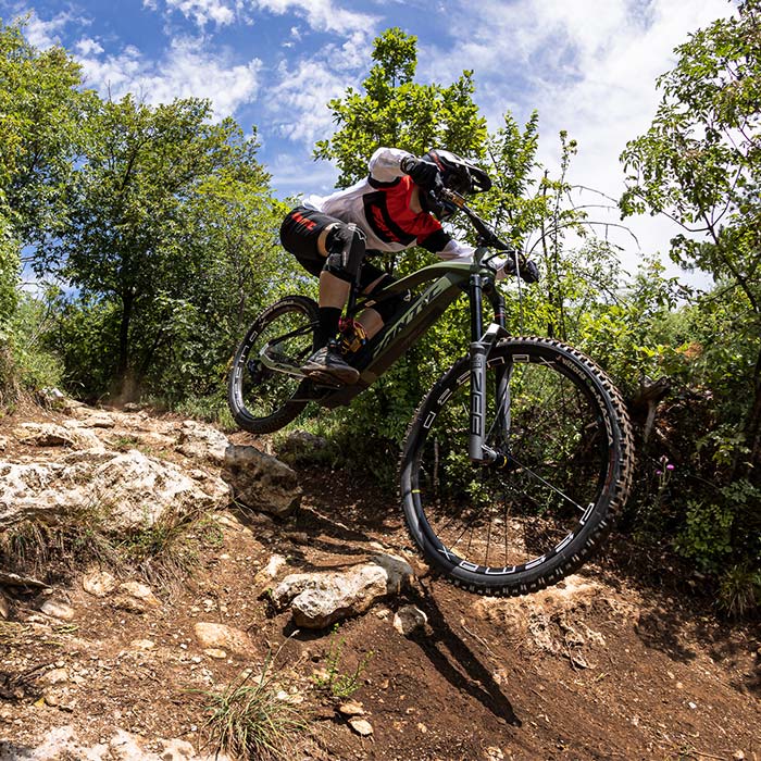 La E-MTB Enduro representa la excelencia para los amantes de los desafíos más extremos. Con geometrías optimizadas para descensos técnicos, senderos flow y single tracks agresivos, ofrece un control absoluto y una potencia explosiva. Está disponible en 5 versiones: Sport, Race, Racing, Factory y Team, siendo esta última la más destacada gracias a su cuadro de carbono y una suspensión con un recorrido de 180-190 mm, ideal para enfrentar los terrenos más exigentes.