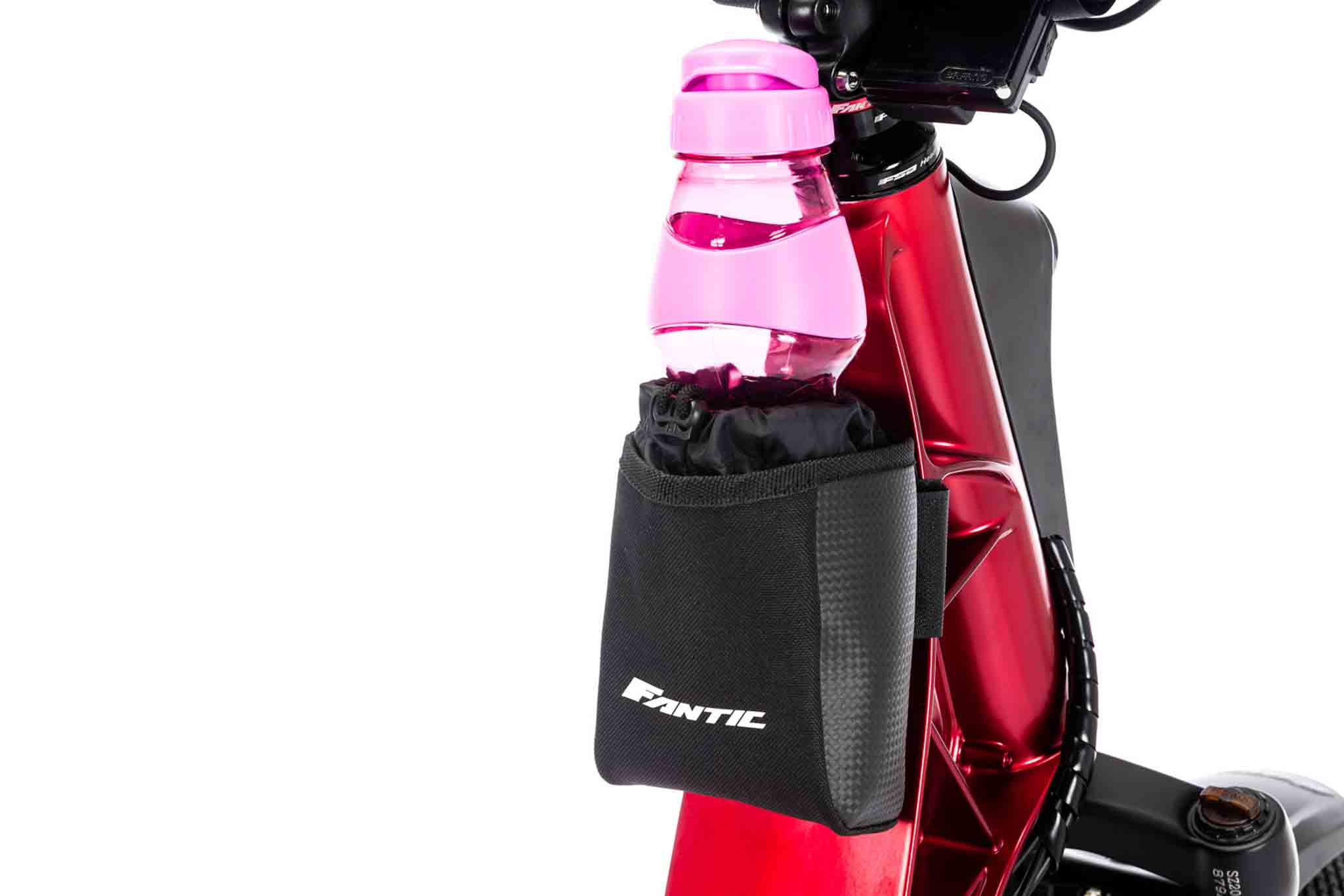 Black bag with transparent top part, it is mounted on the handlebar and it suits smartphones and/or small objects.